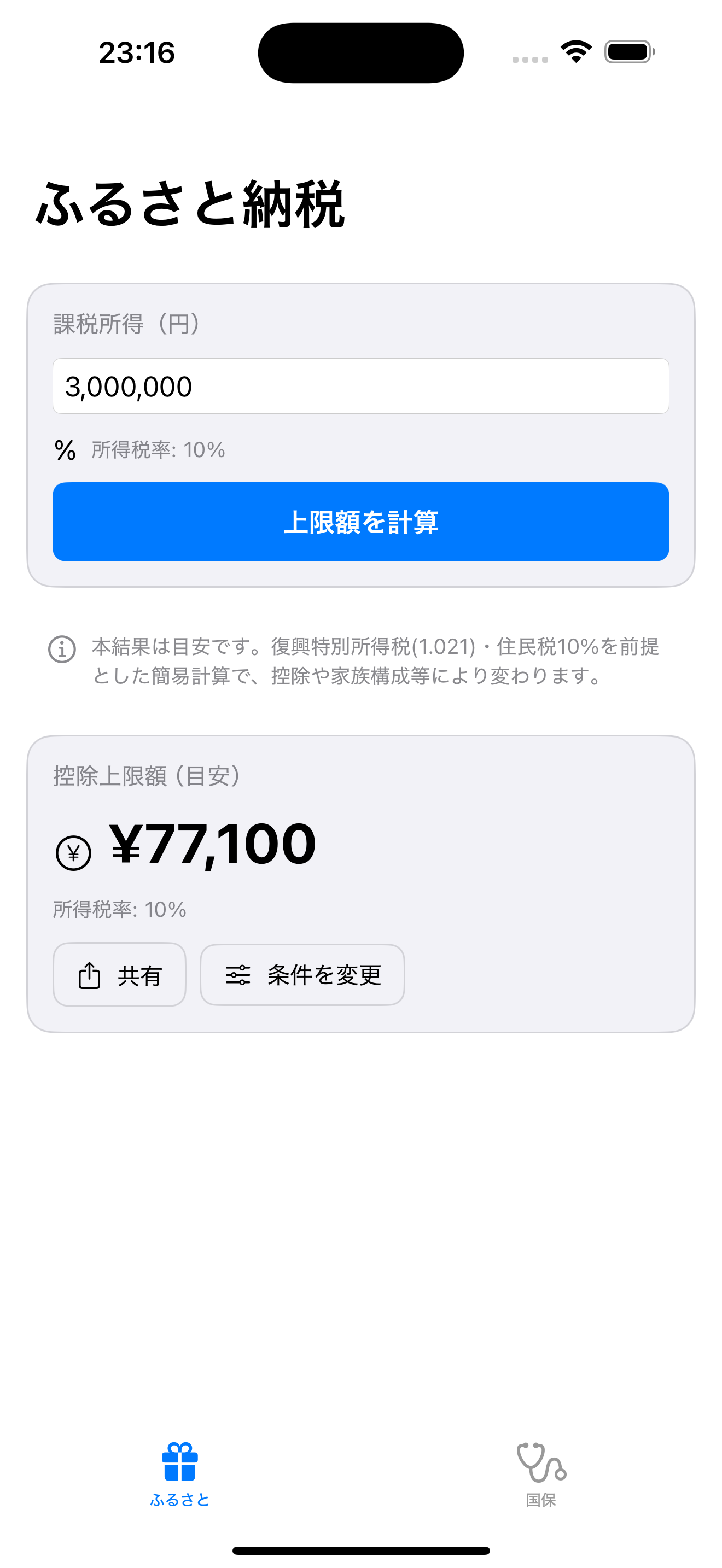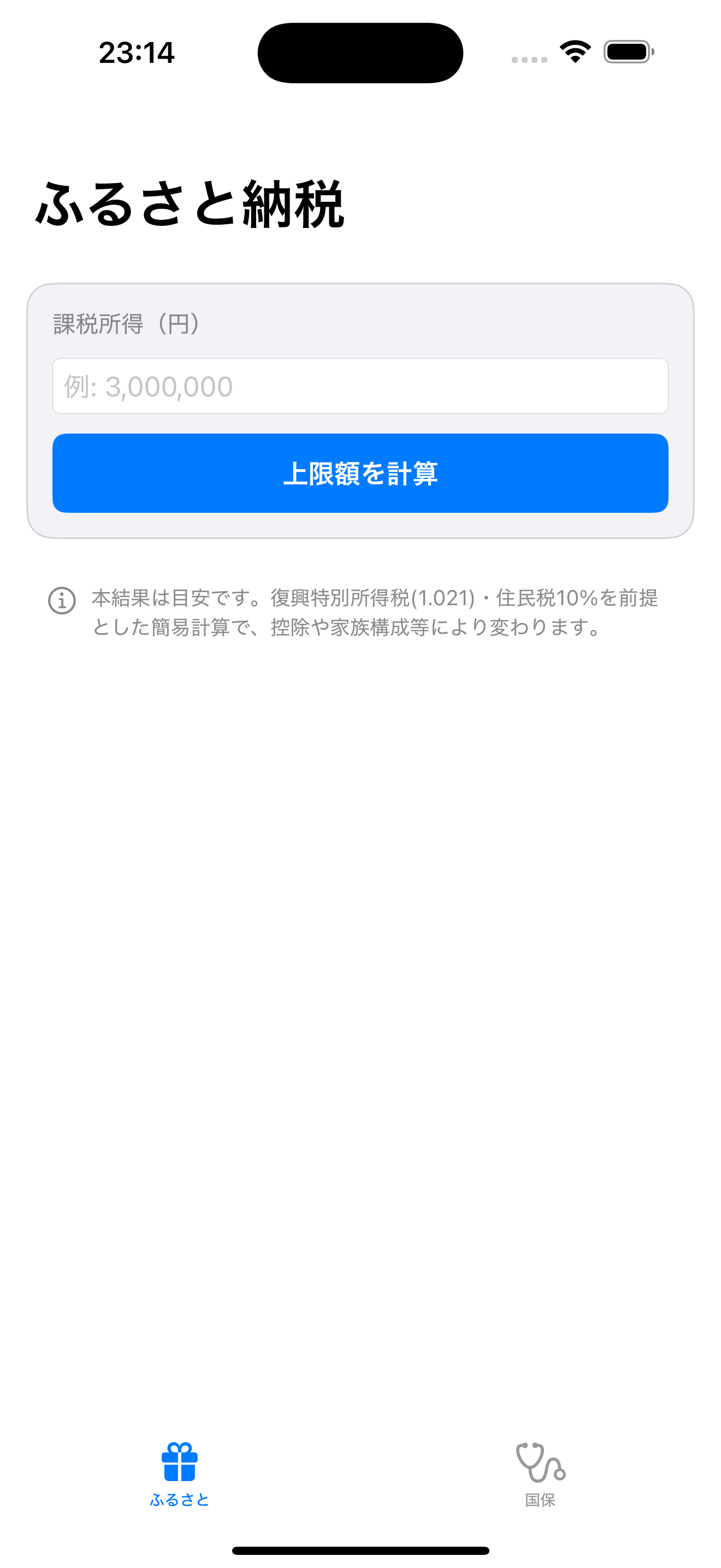 ふるさと納税の上限 & 国民健康保険料ナビ